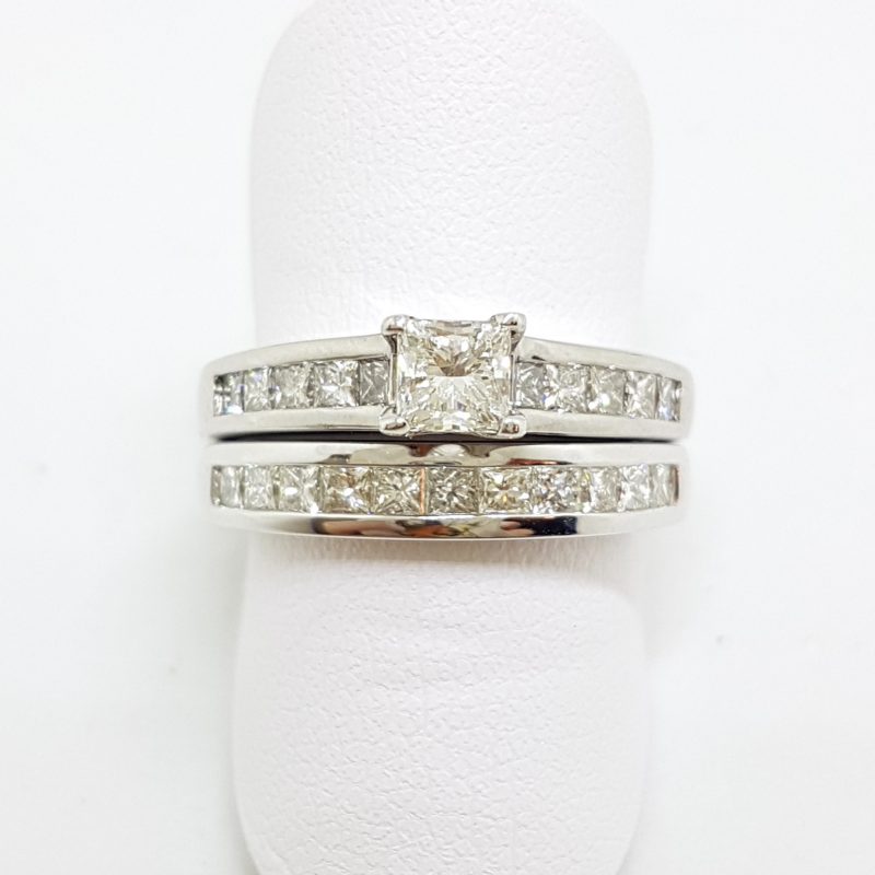 18ct White Gold Princess Cut Diamond Channel Set Engagement & Wedding Ring Set
