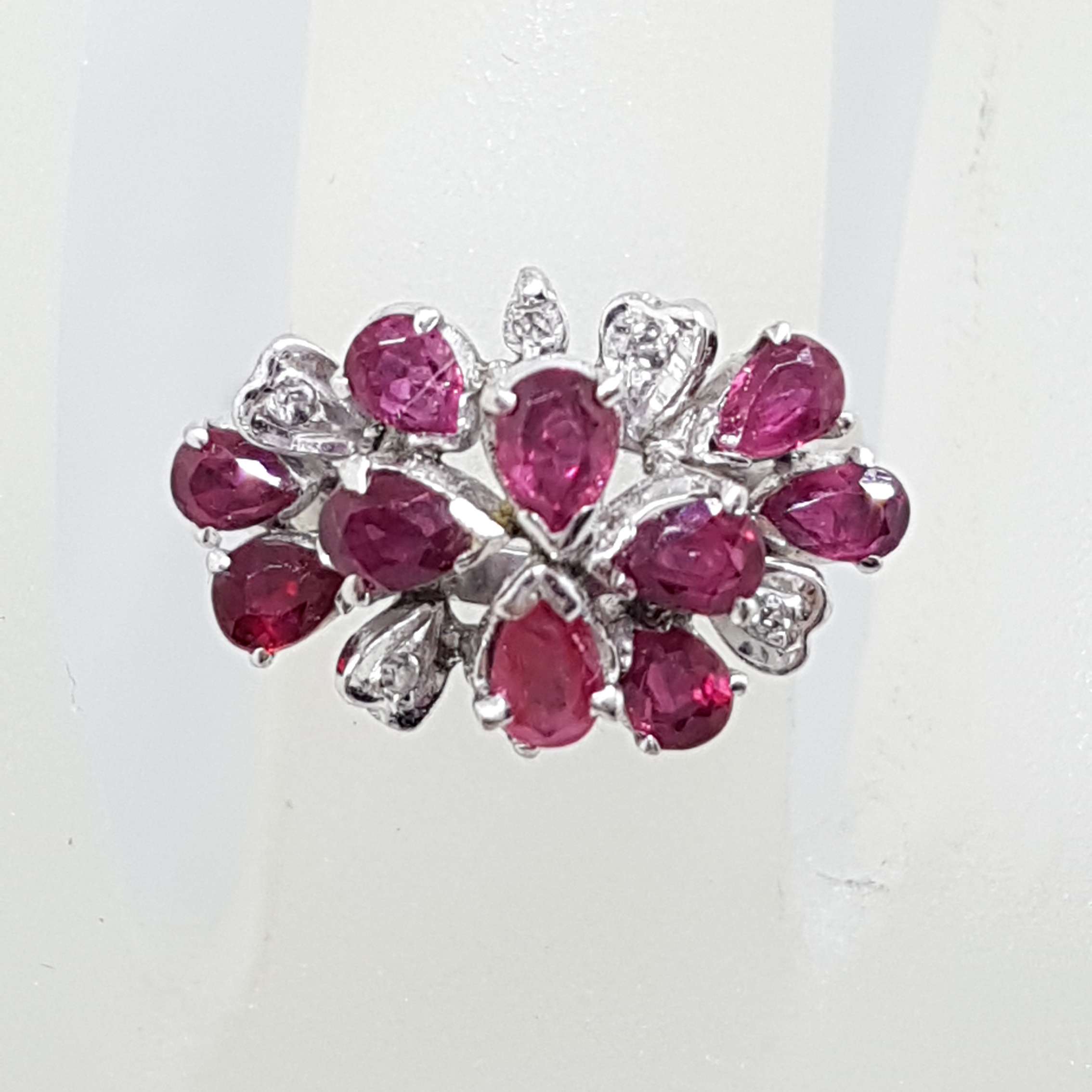 Tags: 18ct, 18ct White Gold, Antique, Cluster, diamond, Gold, Large, Ring, ruby, vintage, White