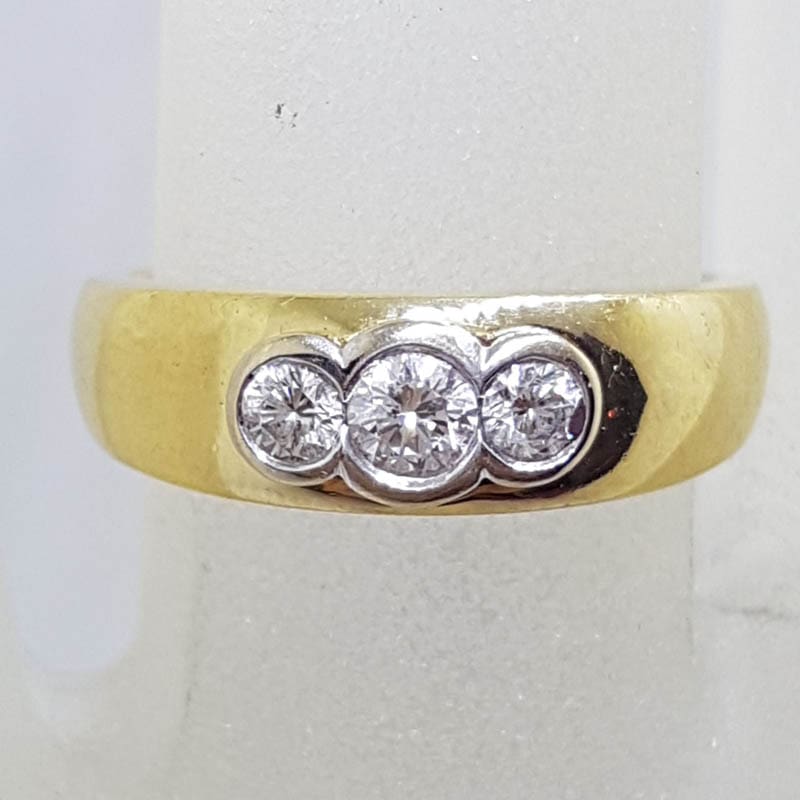 18ct Yellow Gold Bezel Set Trilogy Diamond Ring – Heavy