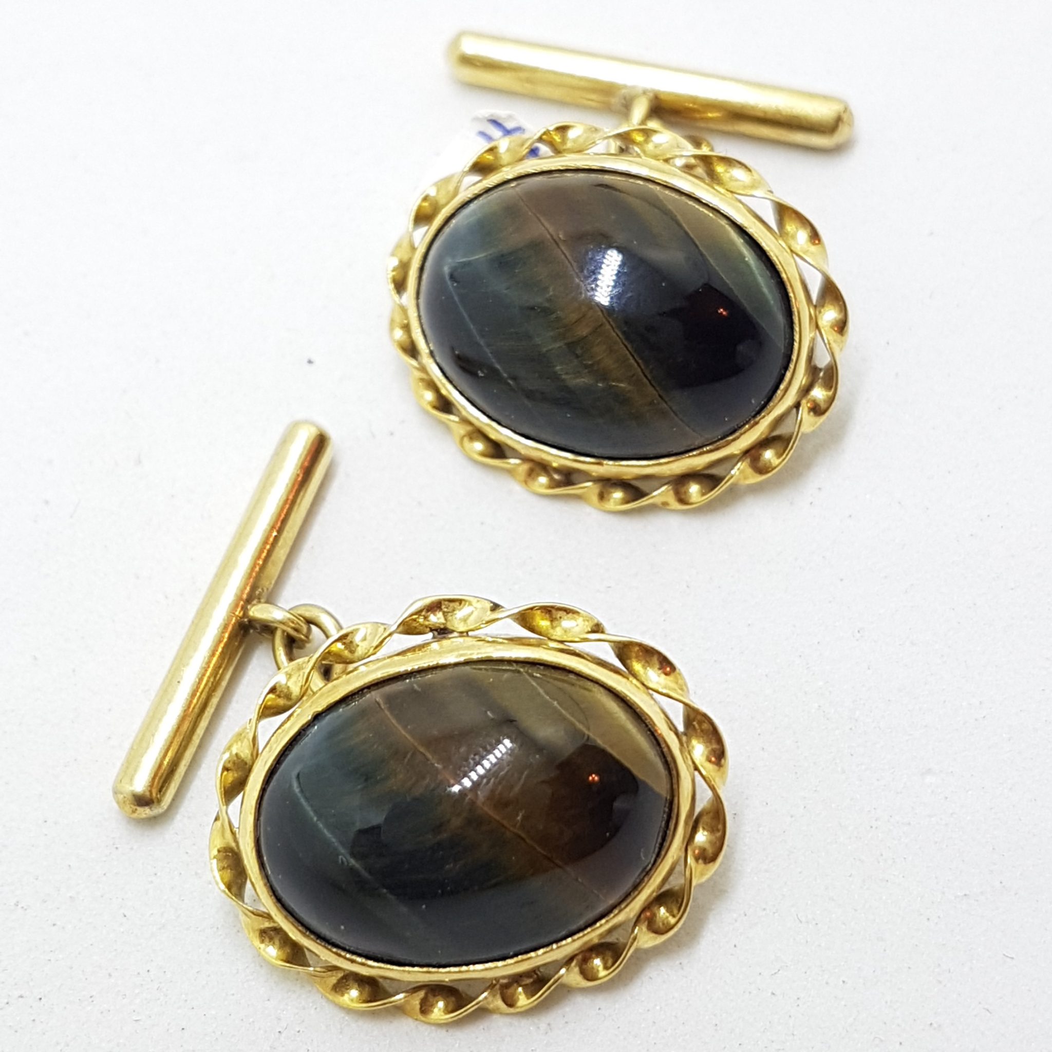 Tags: 18ct, Antique, Blue, Cufflinks, Gold, Large, Ornate, Oval, Tiger Eye, vintage, Yellow