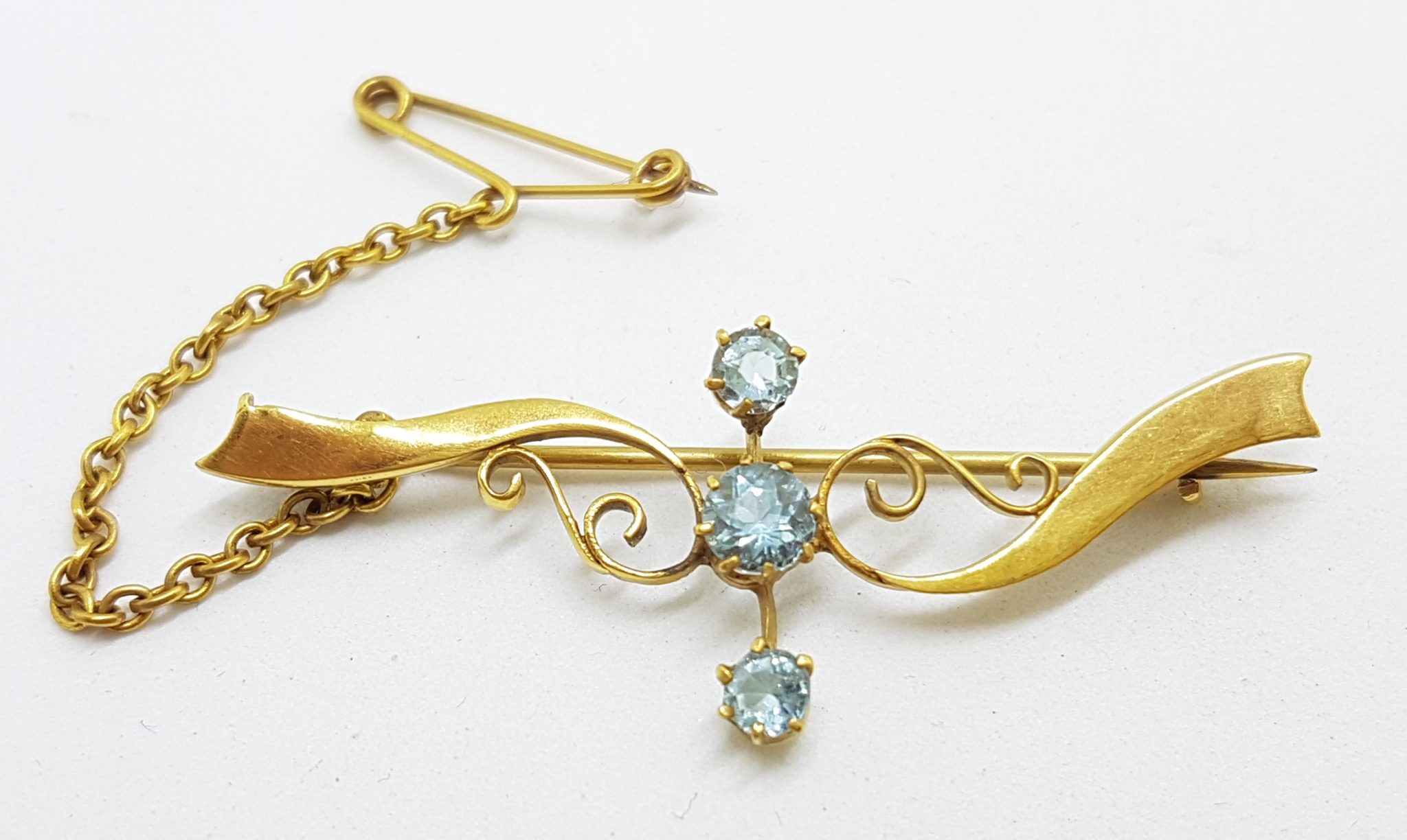 Tags: 9ct, 9ct gold, Antique, Aquamarine, Bar, Bar Brooch, Brooch, Gold, Ornate, Twist, vintage, Yellow, Yellow Gold