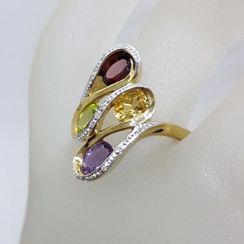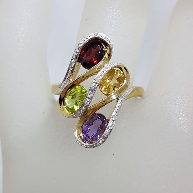 9ct Gold Amethyst, Peridot, Citrine and Garnet with Diamonds Ring – Large Swirl