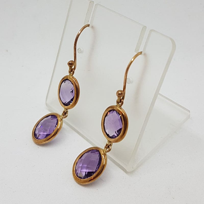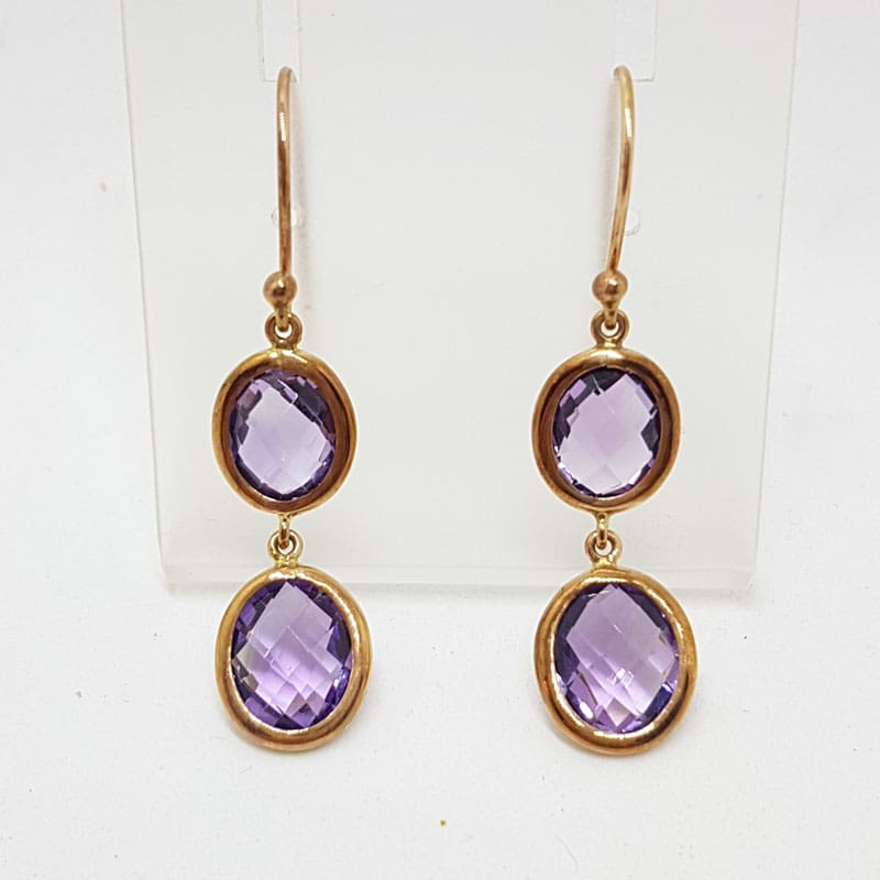 9ct Rose Gold Amethyst Oval Drops Earrings