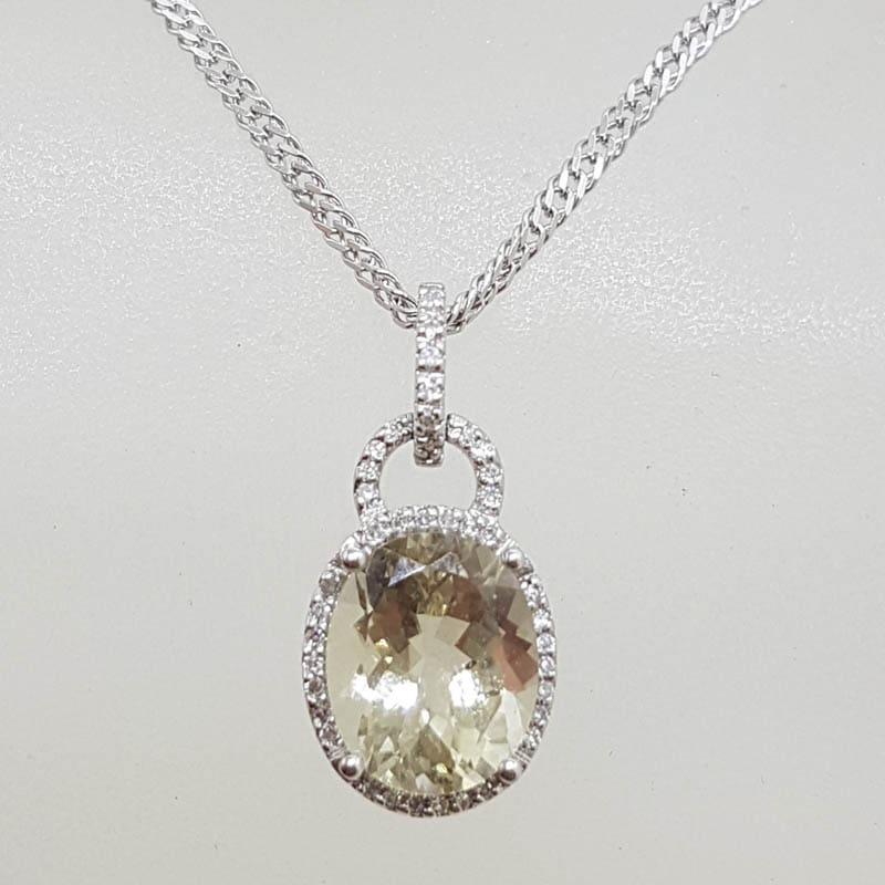 14ct White Gold Oval Lemon Citrine & Diamond Pendant on 9ct Gold Chain