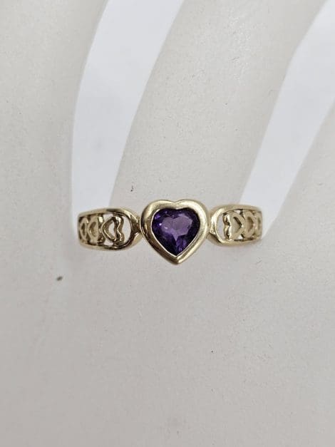 9ct Yellow Gold Amethyst Ornate Filigree Heart Shaped Ring