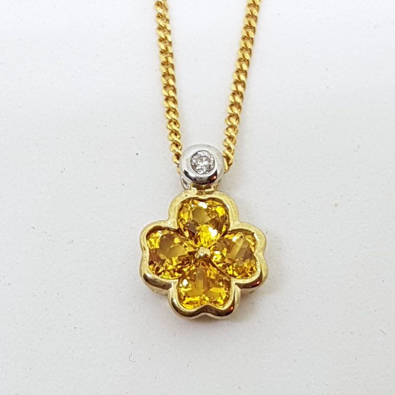 Tags: 9ct Yellow Gold, Chain, citrine, Cluster, diamond, flower, Gold, Pendant