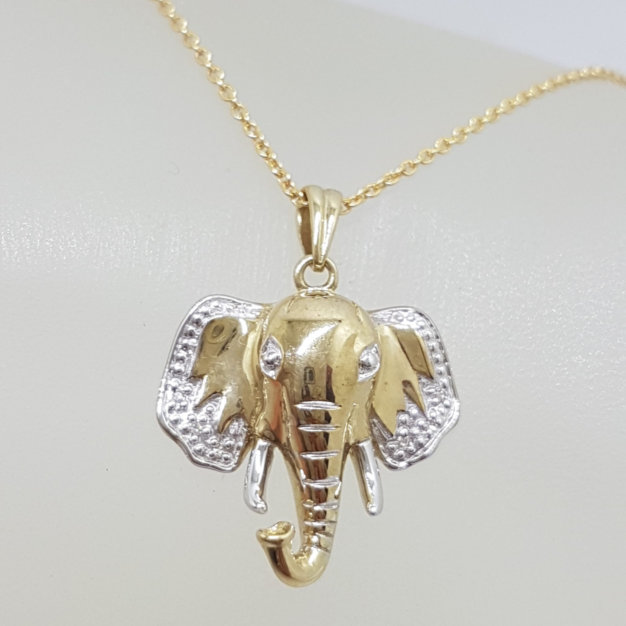 9ct Yellow Gold Diamond Elephant Head Pendant on Gold Chain