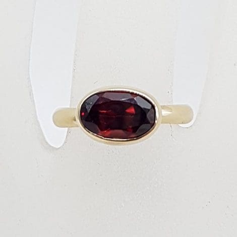 * SOLD * 9ct Yellow Gold Garnet High Oval Bezel Set Ring