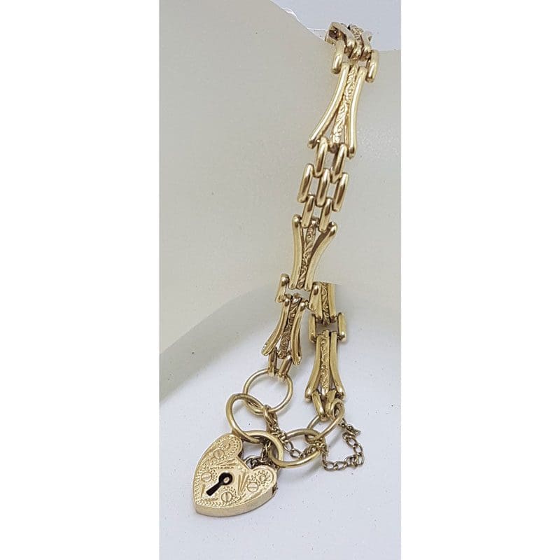 9ct Yellow Gold Gate Link Bracelet with Heart Padlock Clasp