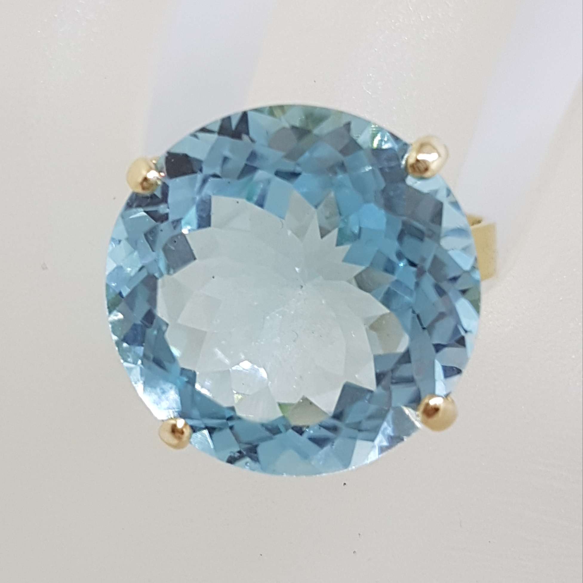 9ct Yellow Gold Large Light Blue Topaz Round Cocktail Ring