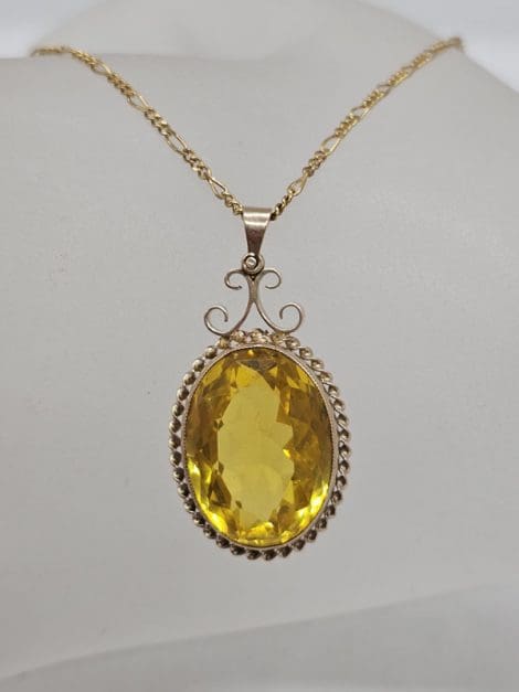 9ct Yellow Gold Large Yellow Oval with Twist Rim Pendant on Gold Chain – Antique / Vintage