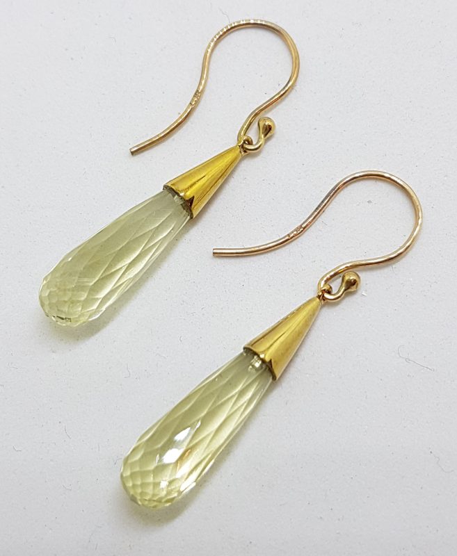 9ct Yellow Gold Lemon Citrine / Quartz Long Cone Drop Earrings