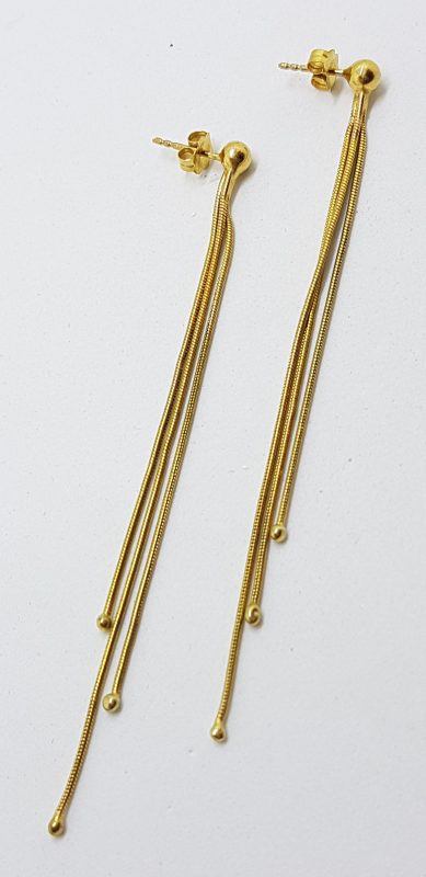 14ct Yellow Gold Long Tassell Chain Drop Earrings