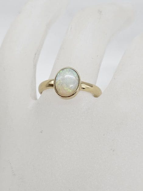 9ct Yellow Gold Opal Solid White with Multi-Colours Bezel Set Ring