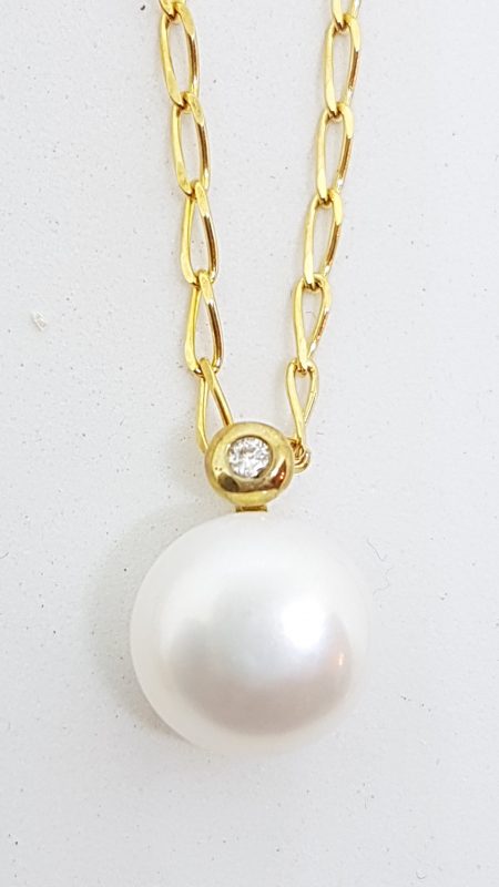 9ct Yellow Gold Pearl & Diamond Pendant on Gold Chain