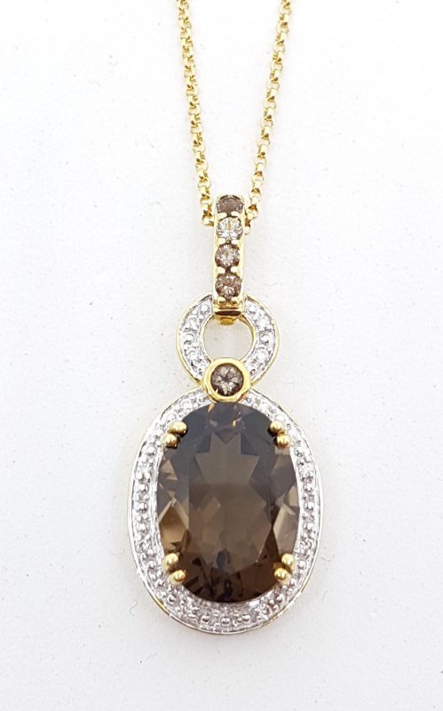 Tags: 9ct Yellow Gold, Chain, diamond, Gold, Oval, Pendant, Smokey Quartz