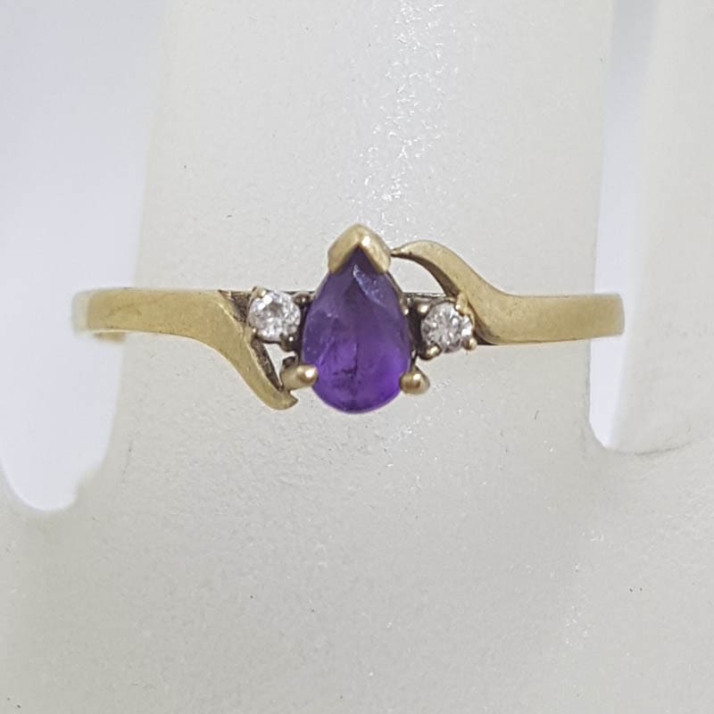 Tags: 9ct, amethyst, diamond, Gold, Pear Shape, Ring, Teardrop, Yellow Gold