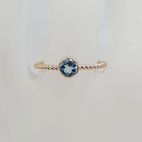 9ct Yellow Gold Topaz Round Bezel Set Twisted Open Band Ring – Stackable