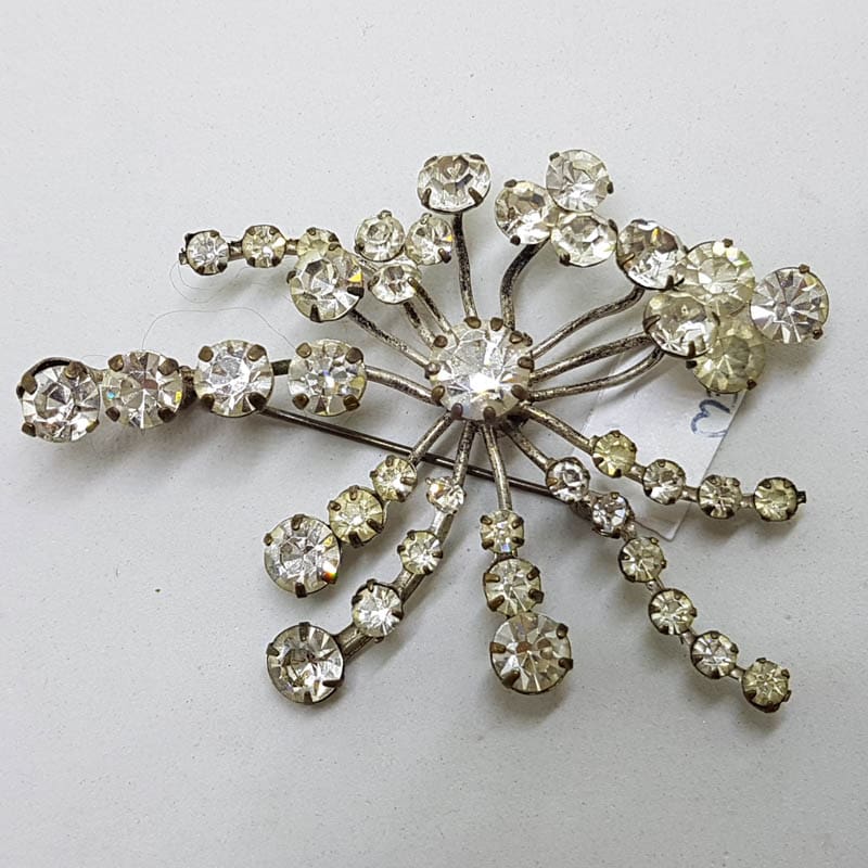 Clear Spray Rhinestone Plated Cluster Brooch – Vintage Costume Jewellery