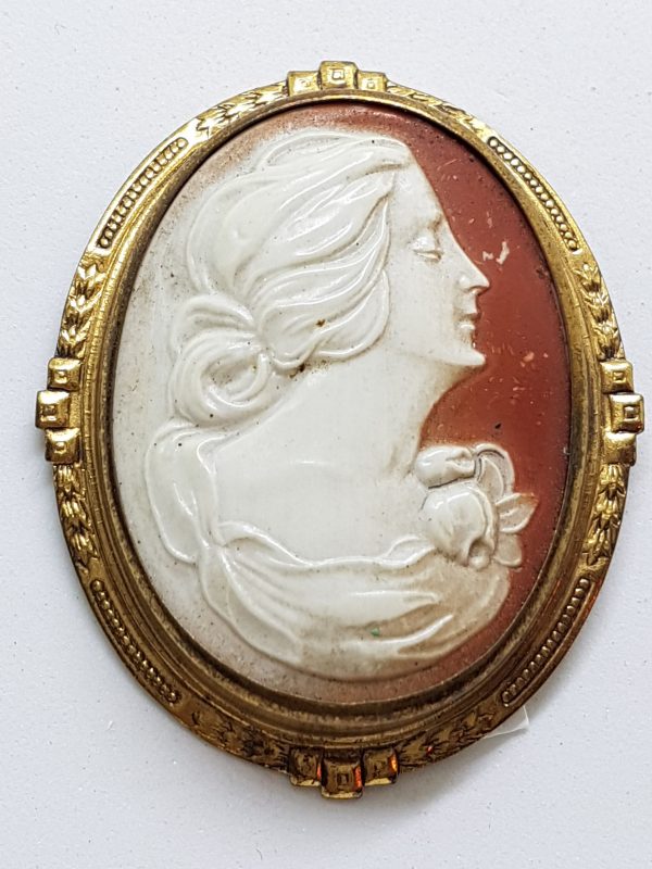 Tags: Brooch, Cameo, Cameo Brooch, Gold Plated, Large, Oval