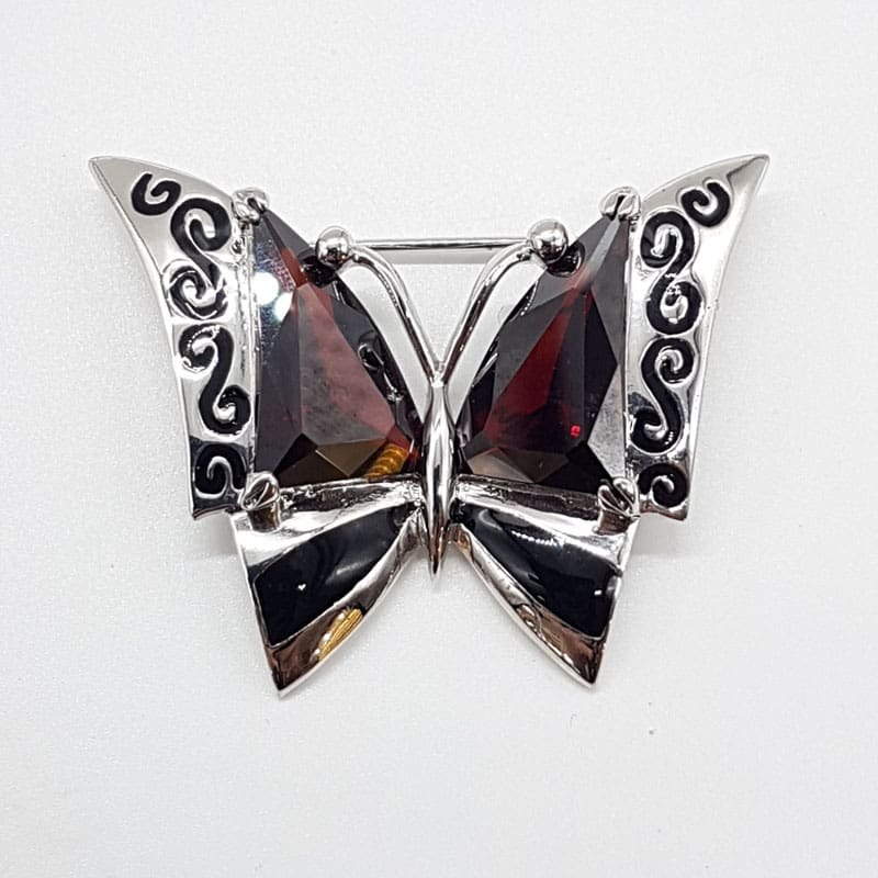 Plated Large Red Crystal Butterfly Italina Brooch – Vintage Costume Jewellery