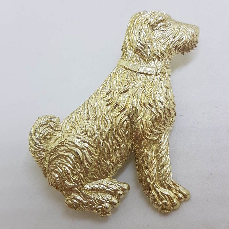 Plated Large Sitting Dog Brooch – Vintage Costume Jewellery – Terrier