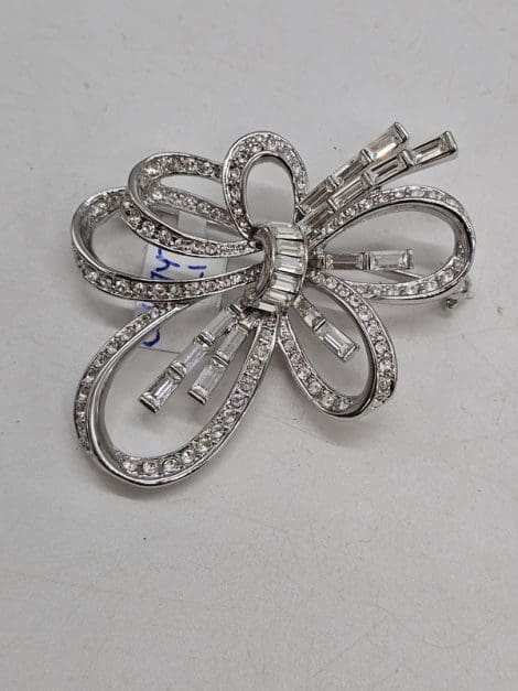 Plated Rhinestone Large Entwined Ribbon Style Cluster Brooch – Vintage Costume Jewellery