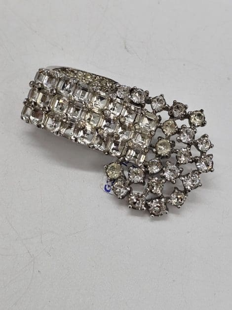 Plated Rhinestone Very Large Wide Swirl Brooch – Vintage Costume Jewellery