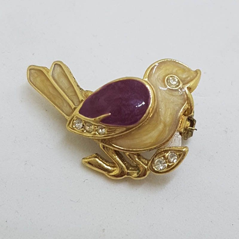 Plated Small Enamel Bird Brooch – Vintage Costume Jewellery