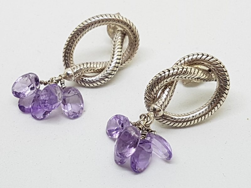 Sterling Silver Amethyst Twist Chunky Earrings