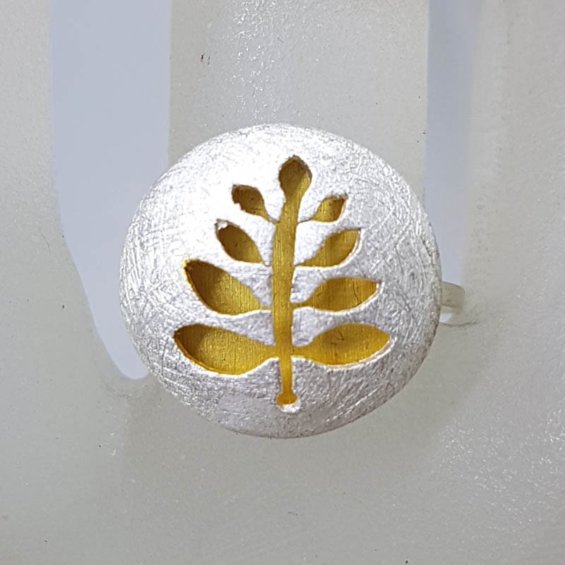 Sterling Silver and Plated Matte Finish Leaf / Tree of Life Round Ring