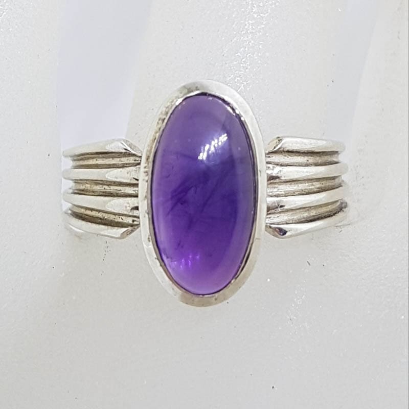 Sterling Silver Large Oval Cabochon Cut Amethyst Ring