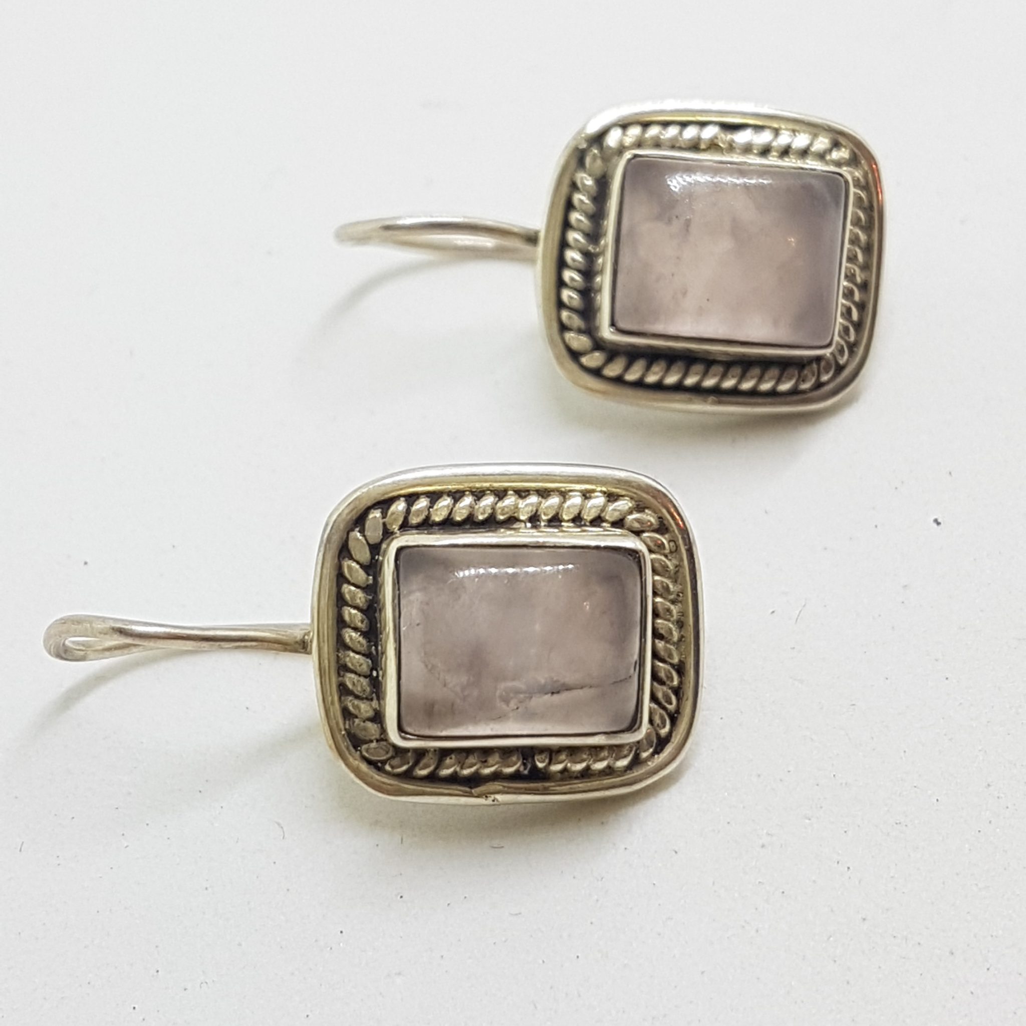 Tags: Cabochon Cut, drop, earrings, Rectangular, Rose Quartz, silver, Sterling