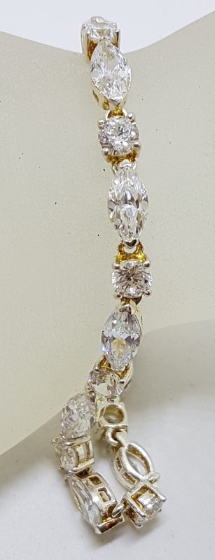 Sterling Silver Cubic Zirconia Marquis & Round Bracelet