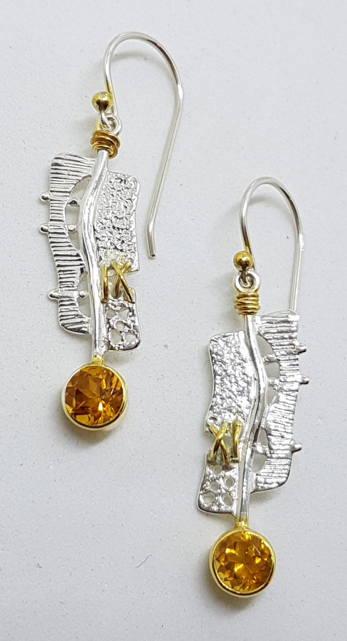 Sterling Silver & Gold Plate Long Citrine Drop Earrings