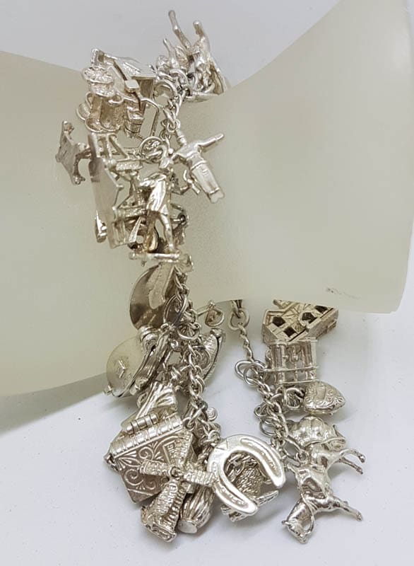 Sterling Silver Heavy Vintage Charm Bracelet with 36 Assorted Charms