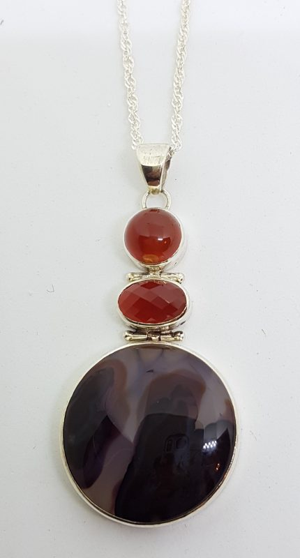 Sterling Silver Large Agate & Carnelian Pendant on Sterling Silver Chain