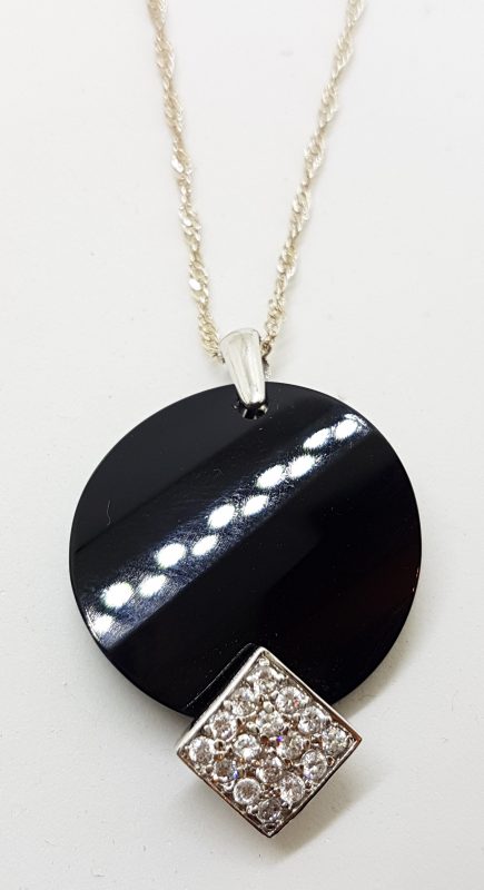 Sterling Silver Large Black and Cubic Zirconia Pendant on Silver Chain