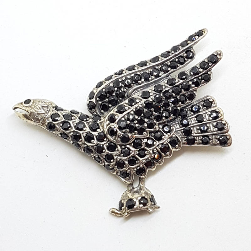 Tags: Bird, Black, Brooch, Eagle, Large, silver, Sterling, Stone
