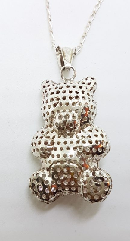 Sterling Silver Large Hollow Teddy Bear Pendant on Silver Chain