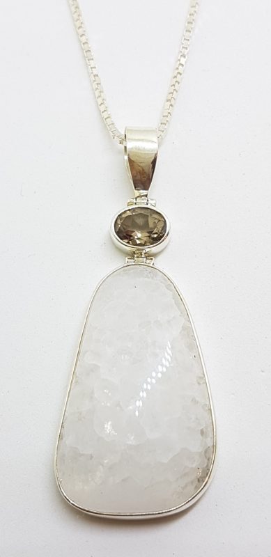 Sterling Silver Large Moonstone & Smokey Quartz Pendant on Silver Chain