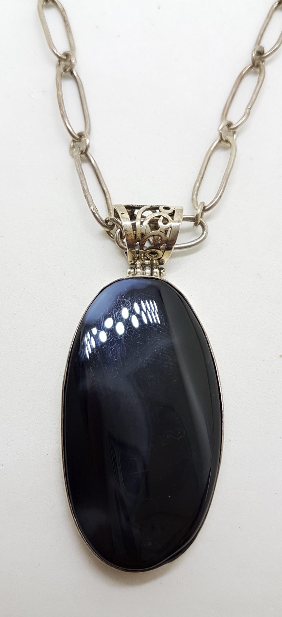 Tags: Banded Agate, Black, Chain, Large, Oval, Pendant, silver, Sterling