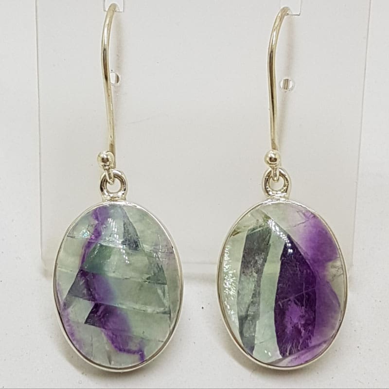 Sterling Silver Large Oval Cabochon Cut Fluorite Drop Earrings
