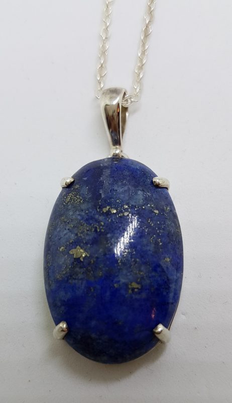 Tags: Chain, Claw Set, Lapis Lazuli, Large, Oval, Pendant, silver, Sterling Silver