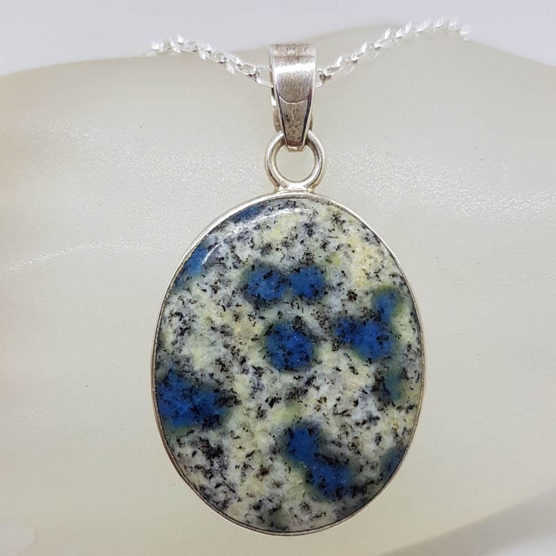 Sterling Silver Large Oval K2 Stone Pendant on Silver Chain