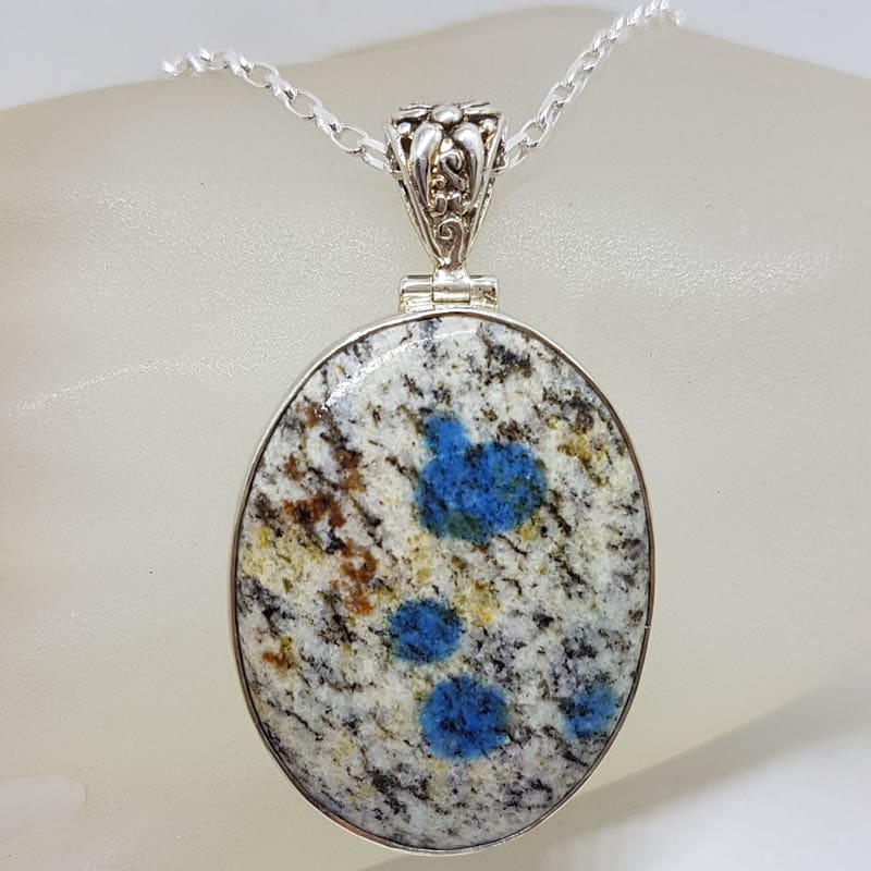 Sterling Silver Large Oval K2 Stone Pendant on Silver Chain