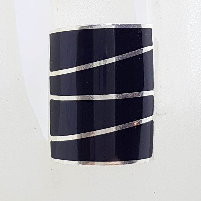 Tags: Black, Enamel, Rectangular, Ring, silver, Sterling Silver
