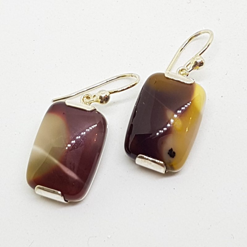 Sterling Silver Large Rectangular Mookaite Drop Earrings