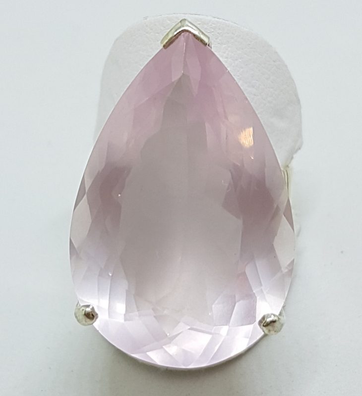 Sterling Silver Large Teardrop Shape Rose Quartz Ring – Cocktail Ring