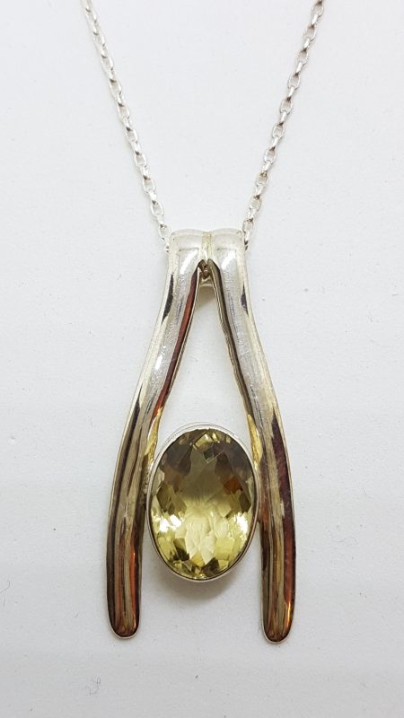 Sterling Silver Large Wishbone Citrine Pendant on Silver Chain